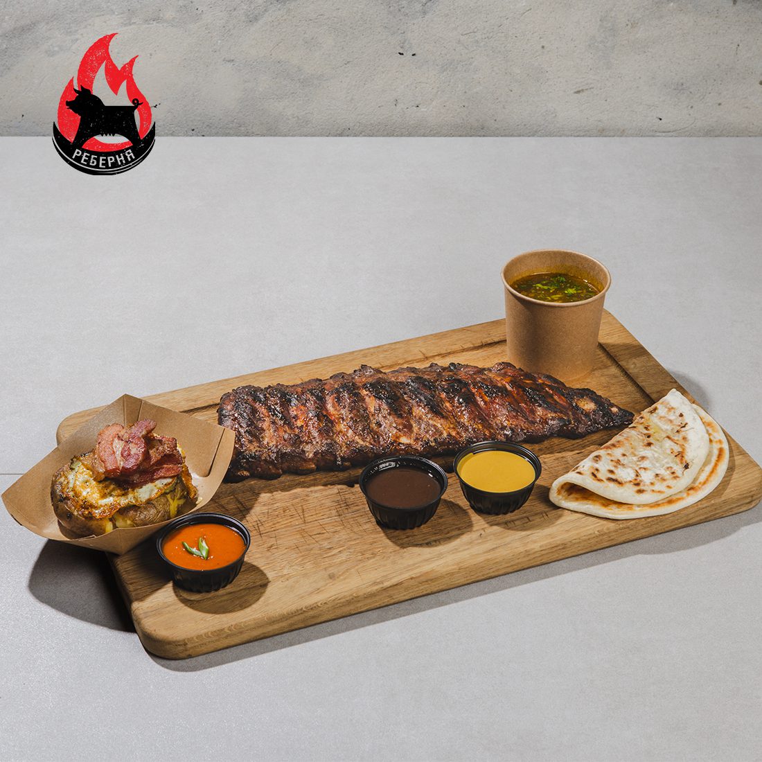 Для збереження температури ми не нарізаємо ребра. Якщо потрібно розрізати або додати фірмовий фартушок з Реберні – пиши в коментарі до замовлення!
