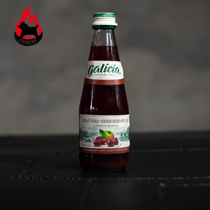 Сік прямого віджиму ТМ Galicia: яблучний, яблучно-чорничний,  яблучно-вишневий.